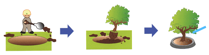 当り3%程度のタテヤマユーキ(粗粒品)を混合し、その後すぐに植え付け・埋め戻しが出来ます。